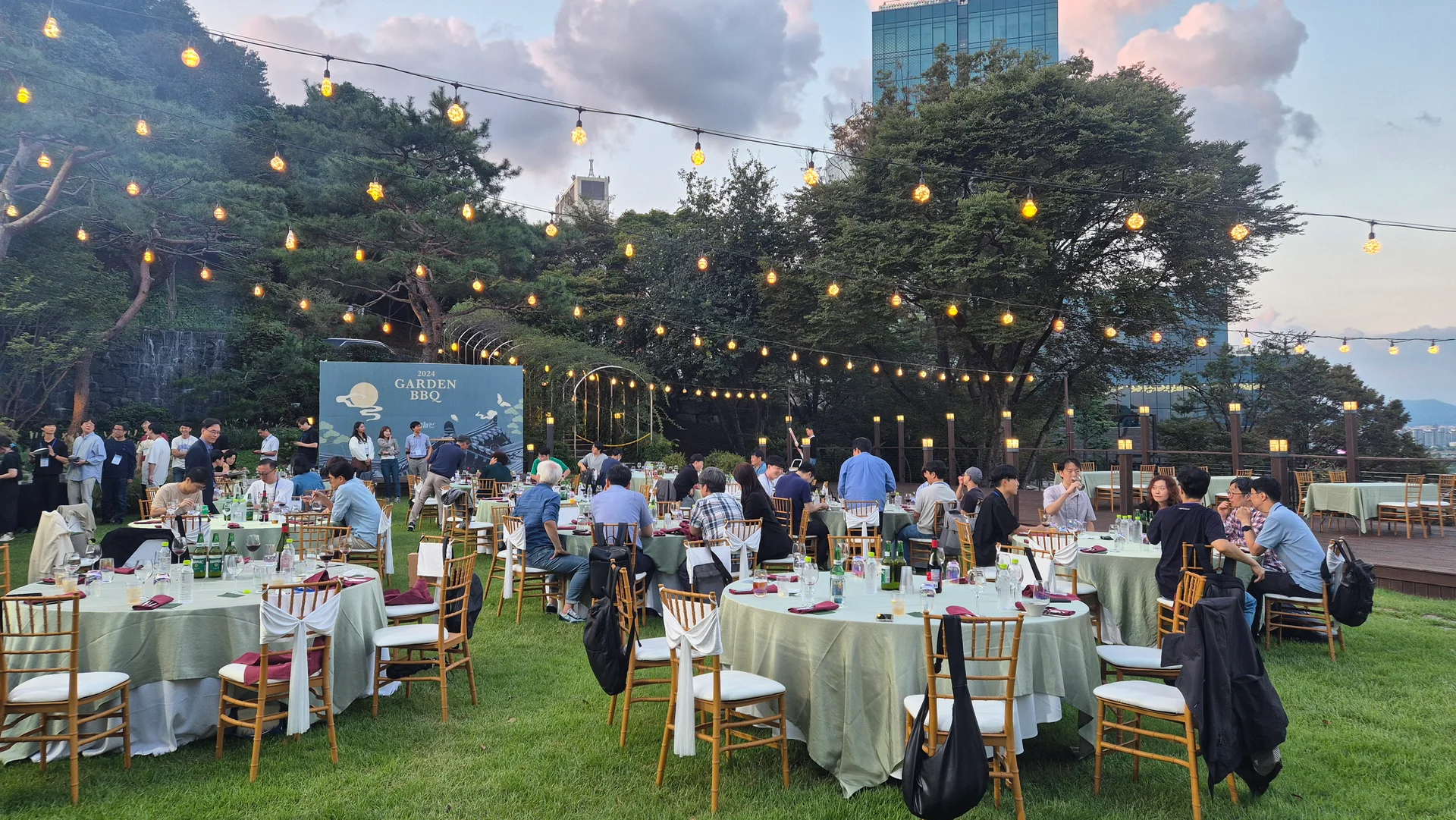 대표님께서 직원들과 꼭 와보고 싶다고 해서 결정된 장소라고 합니다. 한강이 내려다보이는 멋진 정원에 넷스루 직원들만을 위한 BBQ와 다양한 음식, 그리고 음료가 준비되어있었습니다.